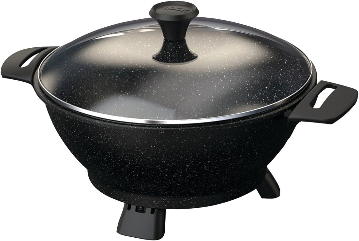 - The Rock electric pot is a 4.8 quart or 4.5L capacity, a little small as compared to others but is great for nuclear families. This electric pot is great for cooking all the fancy food like stir-fries, stews, and soups. It is also a potential food warmer. You can use the wok to keep the food warm for immediate serving while your guest arrives.
